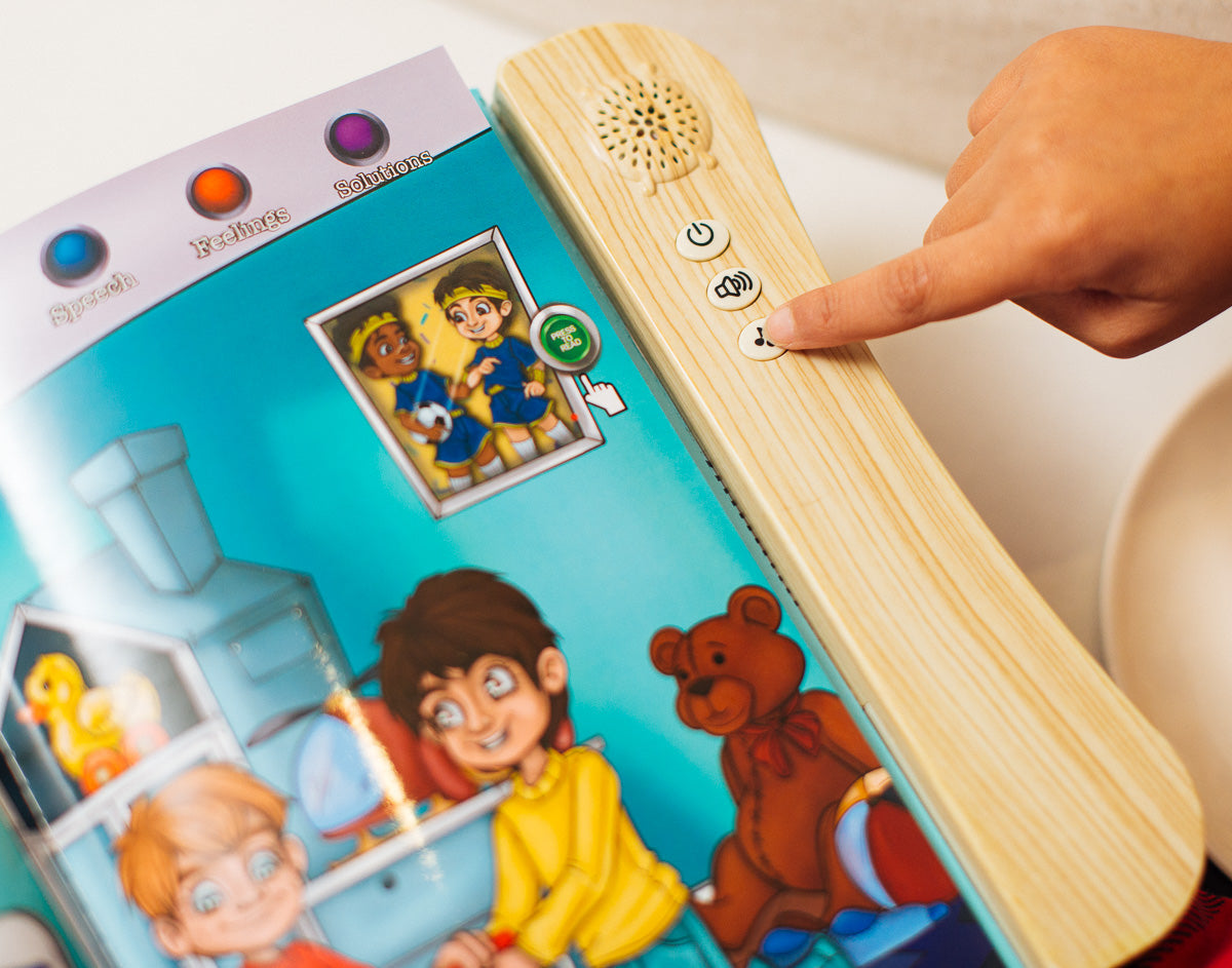 What sets these interactive children's books apart is their thoughtful design, featuring audio playback buttons that bring the pages to life through captivating narration. Explore our book options and their themes below to select the best interactive books for your child's development.